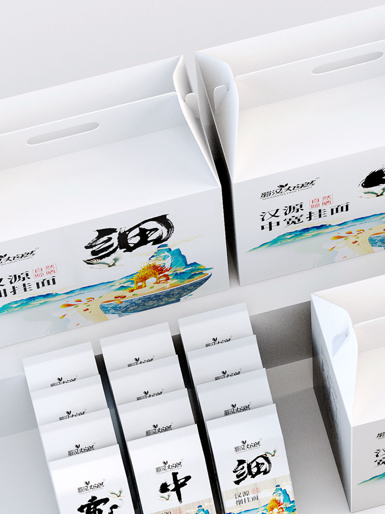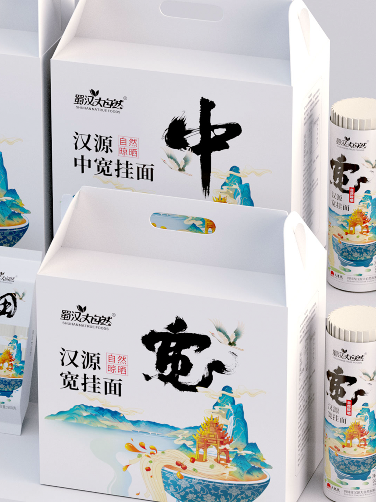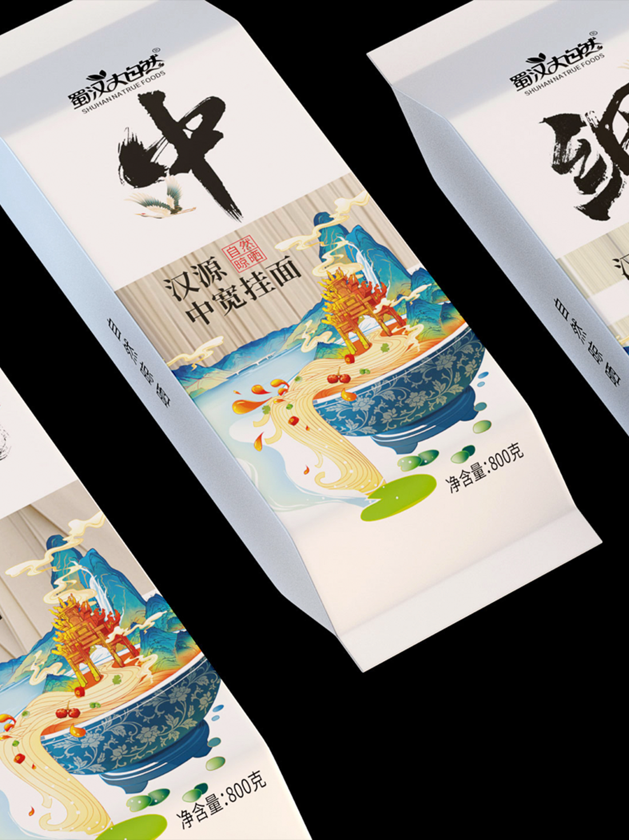 面对挂面这种拥有悠久历史的传统制品,设计重点从地域文化展开,深度挖掘产品文化底蕴,在产品塑造上注重地域特色,进而展现品牌的文化气息。